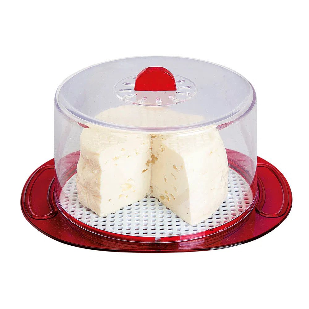 Porta Queijo Queijeira Minas Fresco com Tela, Tampa e Respiro - Vermelha