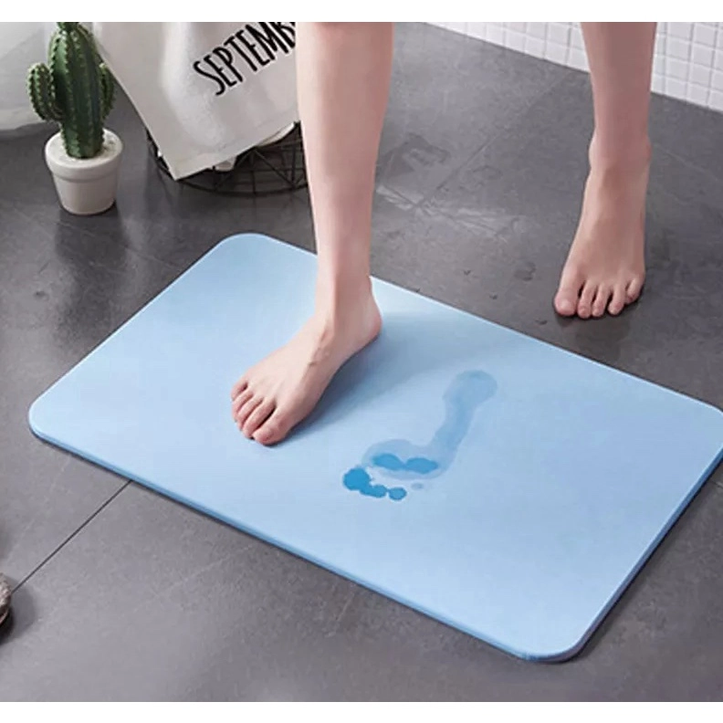 Como o tapete é feito com terra de diatomáceas premium, ele absorve rapidamente a água, ajudando a manter o piso do banheiro seco e limpo o tempo todo.